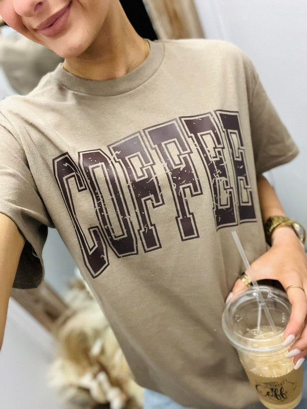 Coffee Distressed Varsity Curved Tee
