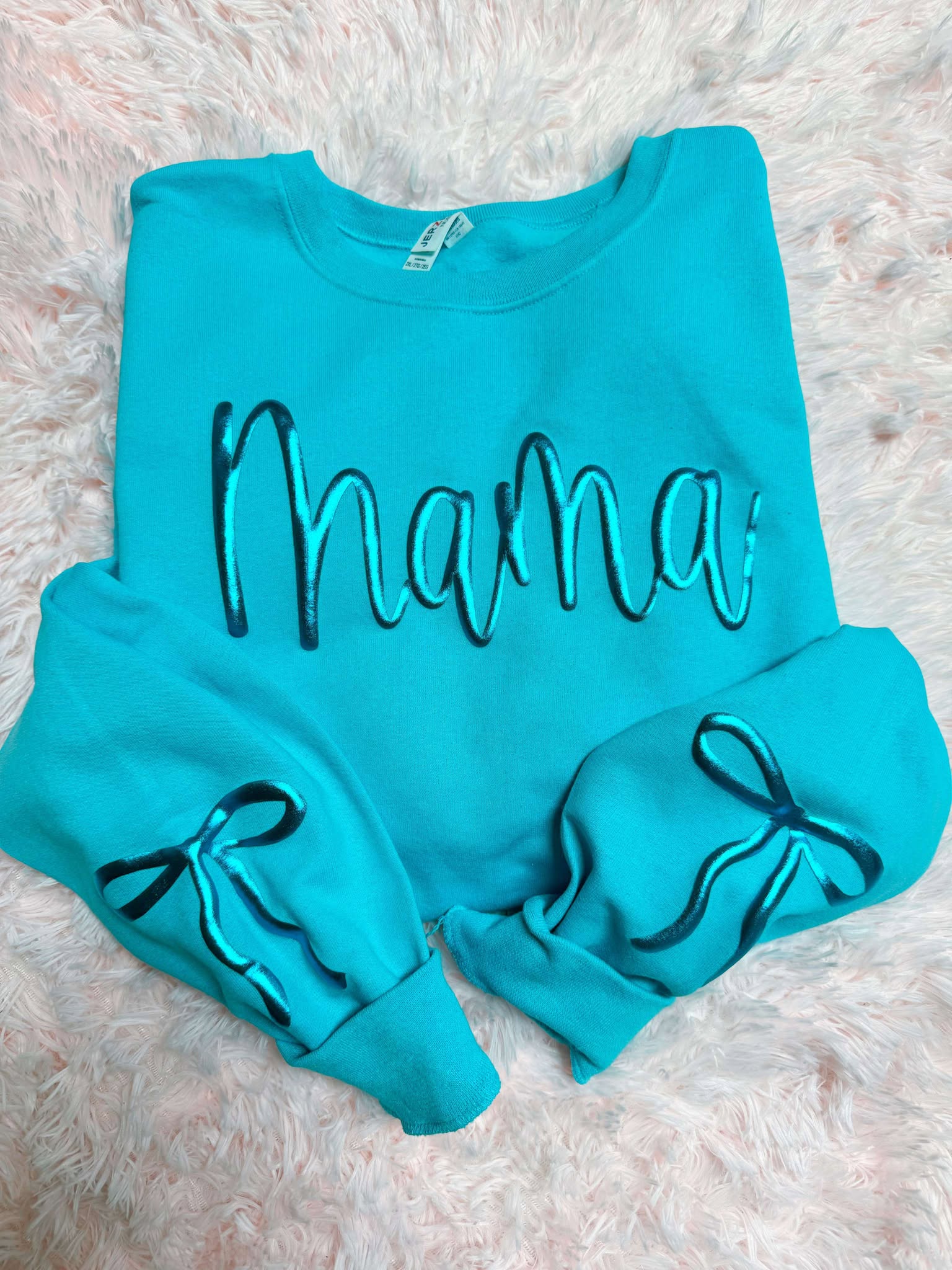 Cursive Custom Metallic Bow Sleeve Puff Sweatshirt