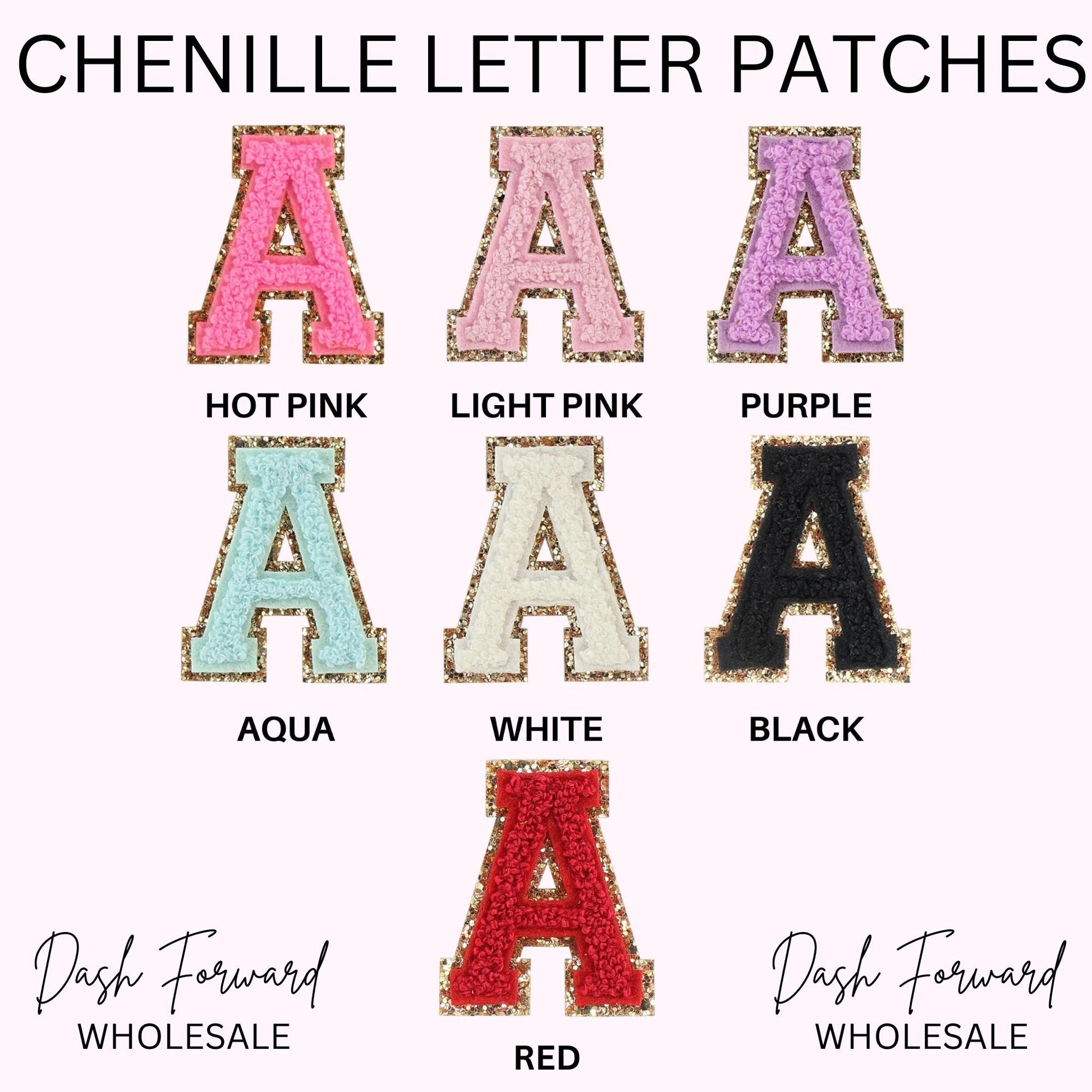 Description: Chenille fabric applied BY HAND with heat activated adhesive. Handle with care! These are patches, NOT embroidery!!