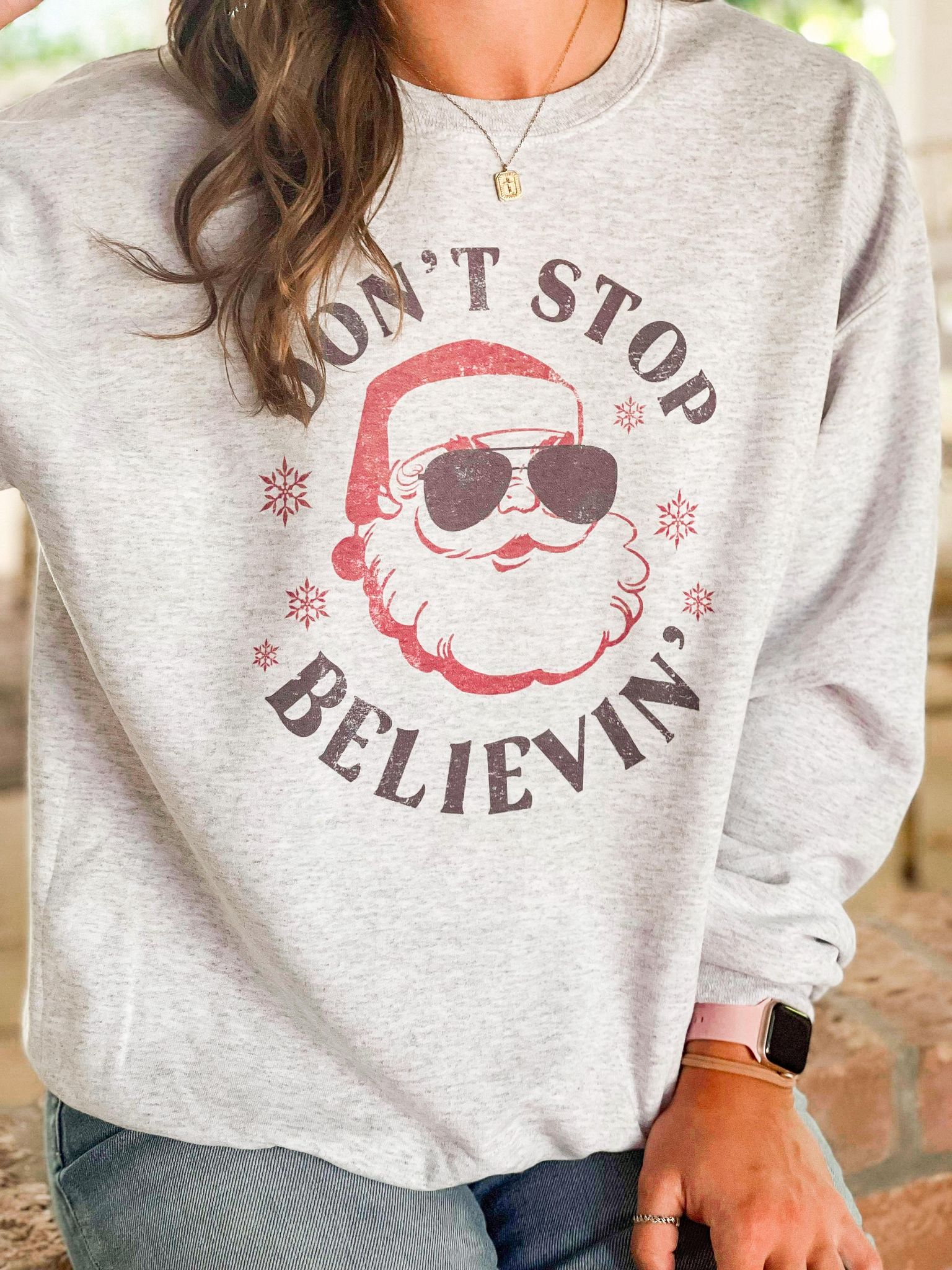 Don't Stop Believin' Santa Sunglasses Sweatshirt