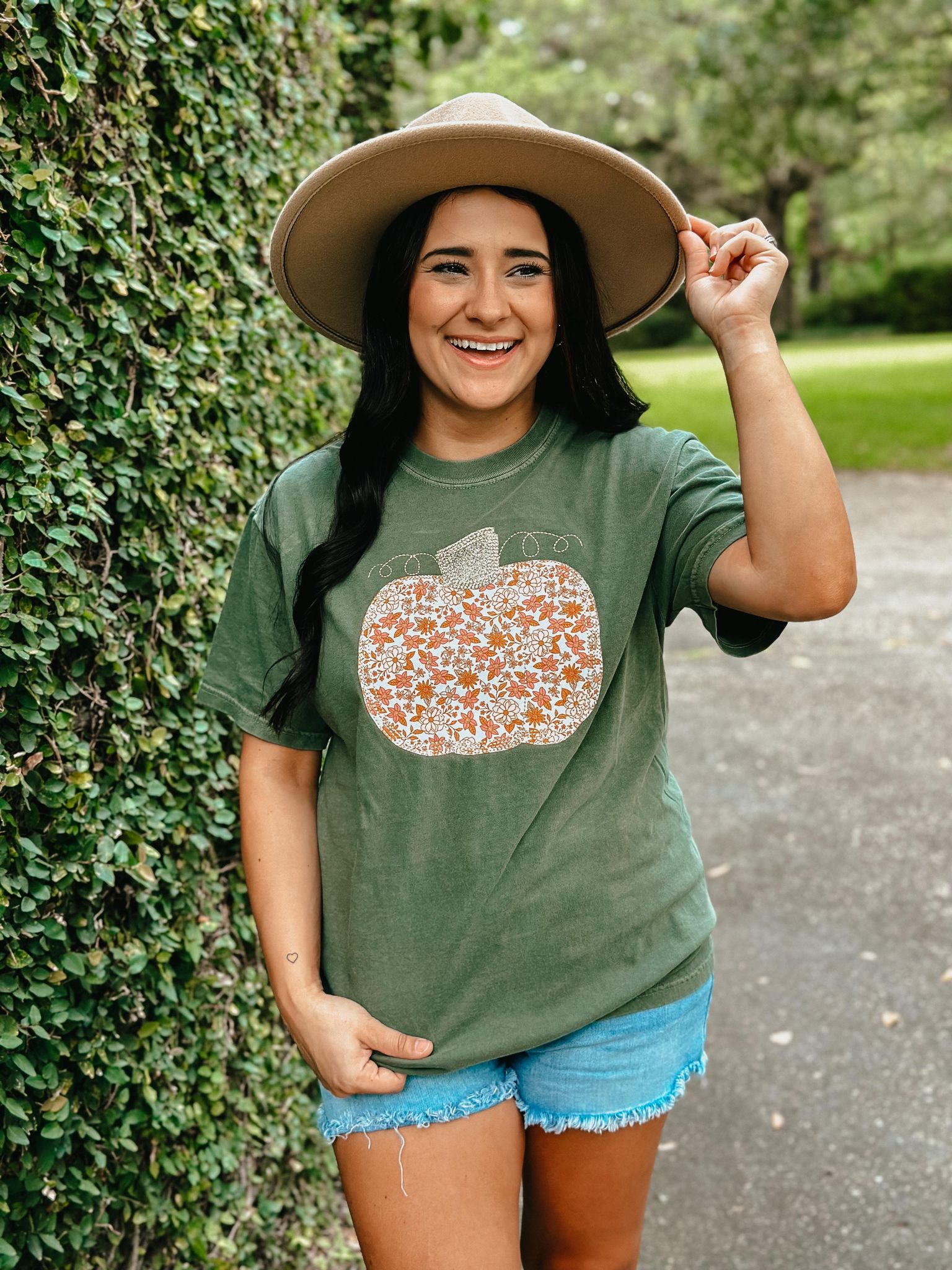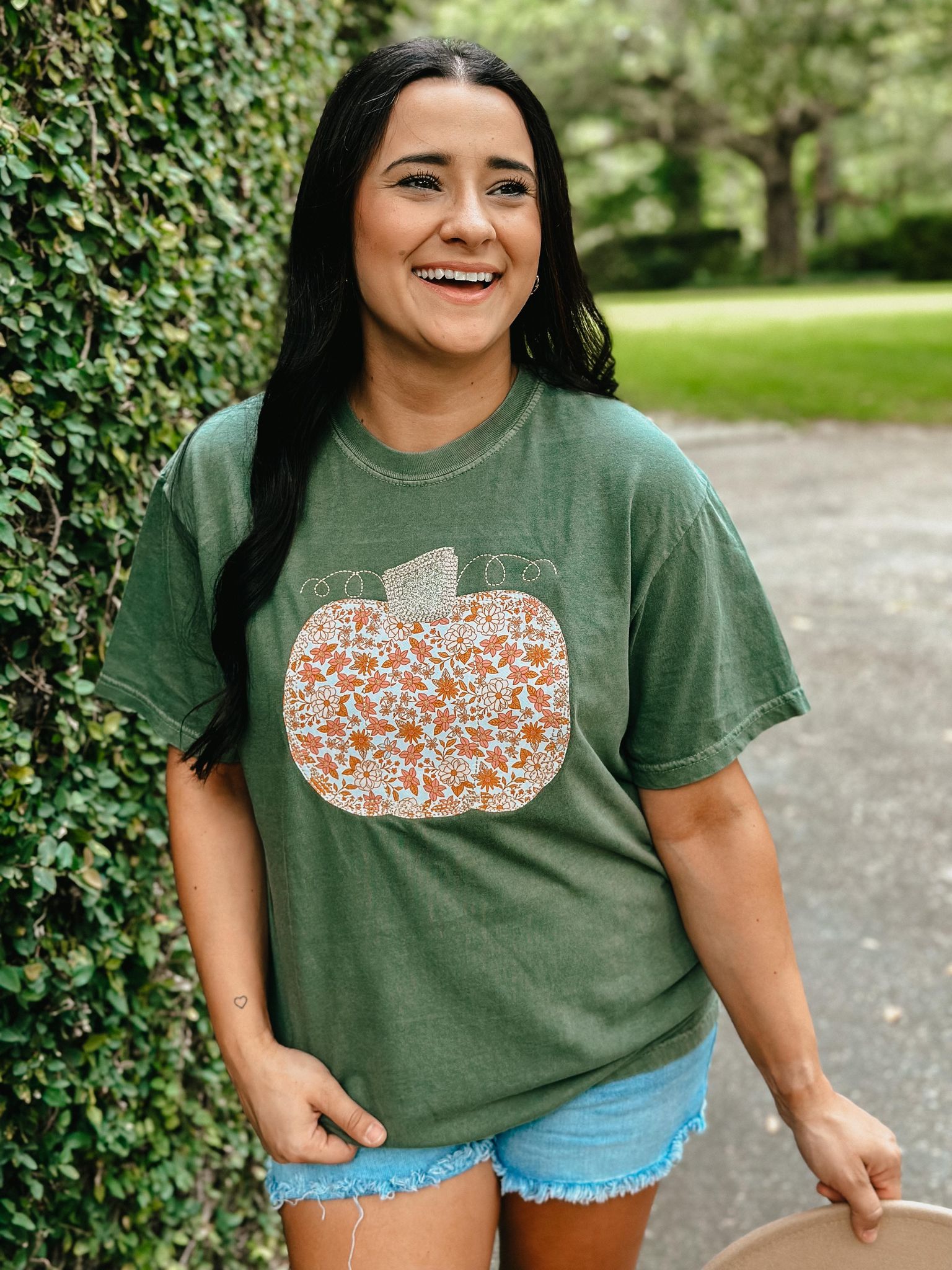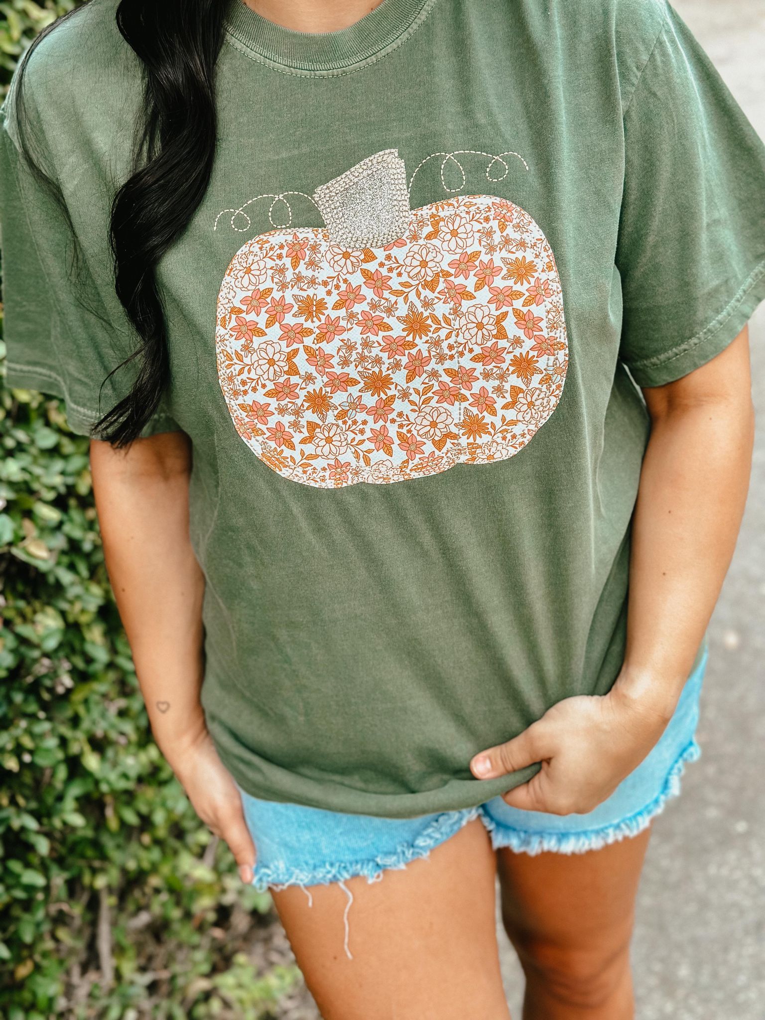 Floral Glitter Pumpkin Applique Tee
