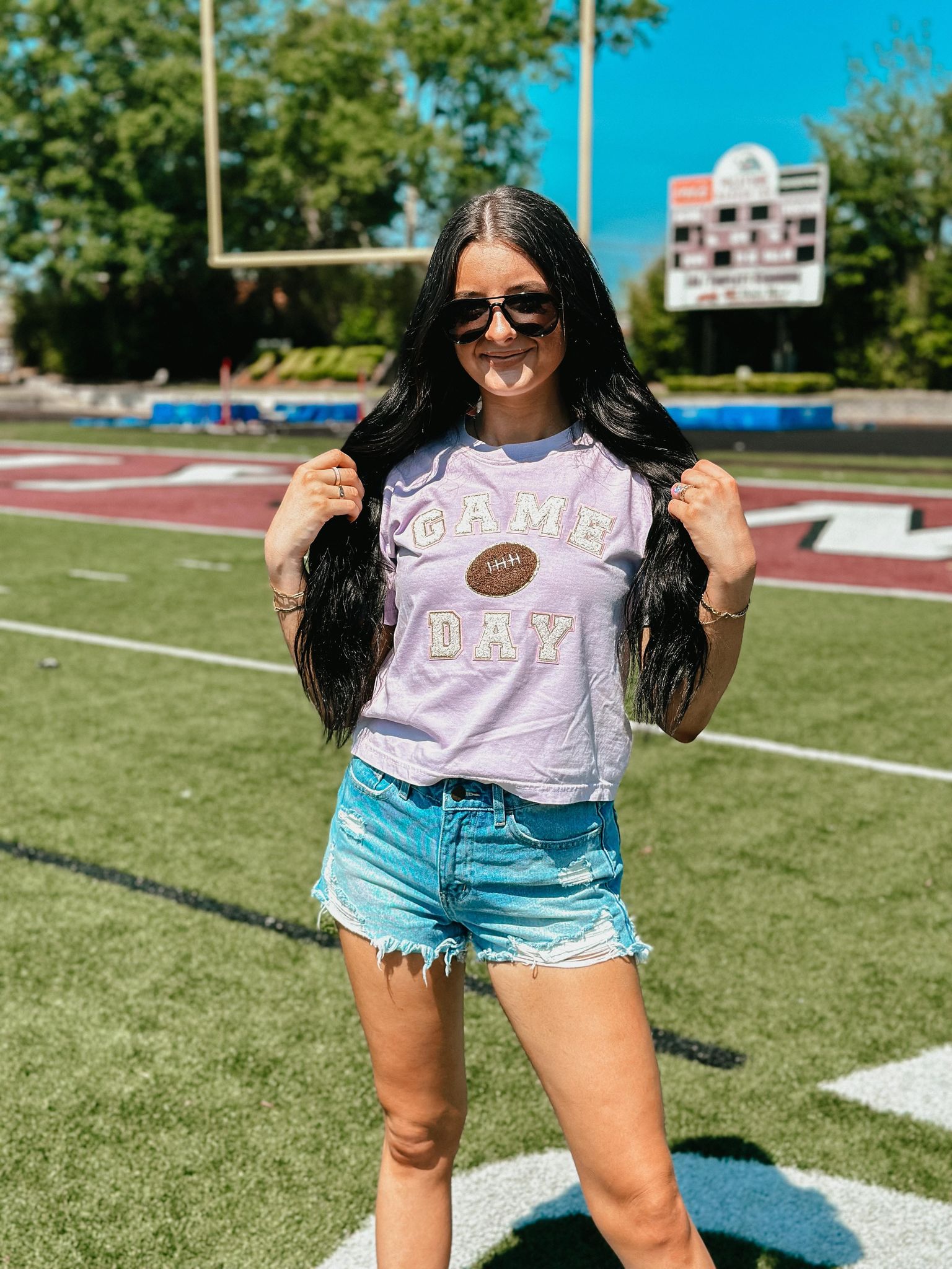 Game Day Football Rose Gold Chenille Patch Midi Cropped Tee