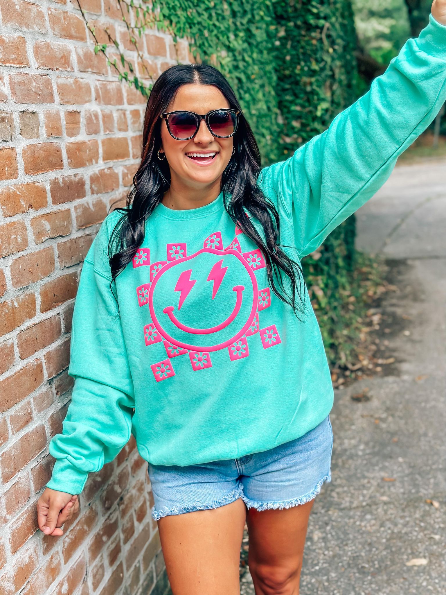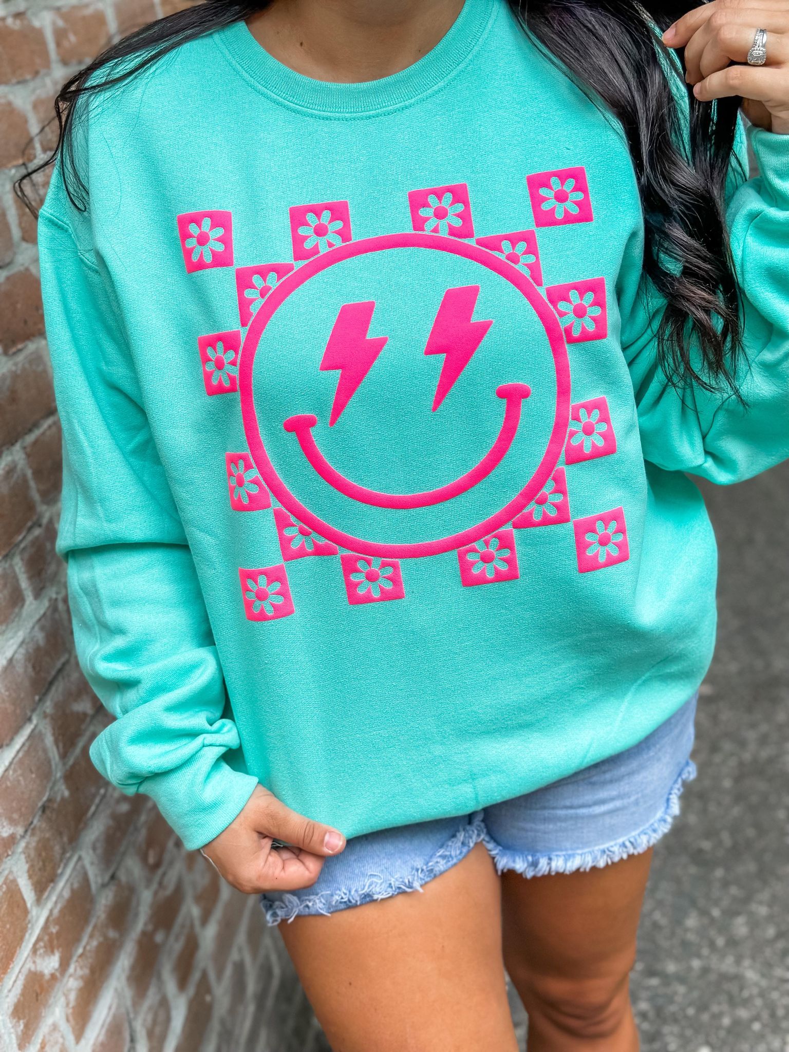 Happy Lightning Floral Checkered Puff Sweatshirt