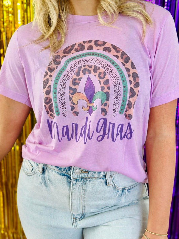 Mardi Gras Leopard Rainbow Tee