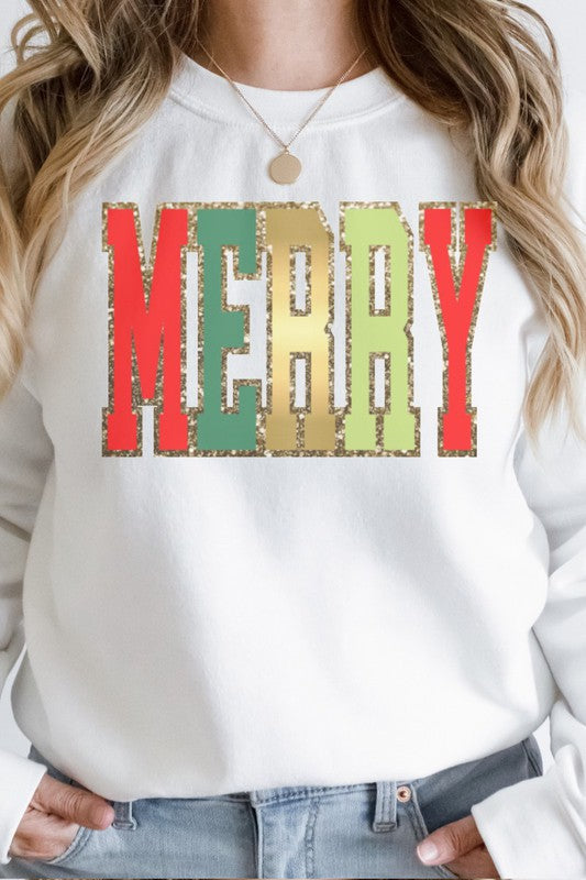Merry Glitter Faux Chenille Patch Sweatshirt