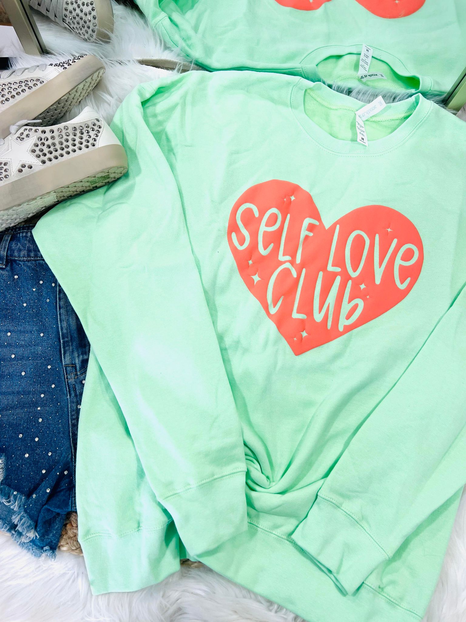 Self Love Club Sparkly Heart Puff Sweatshirt