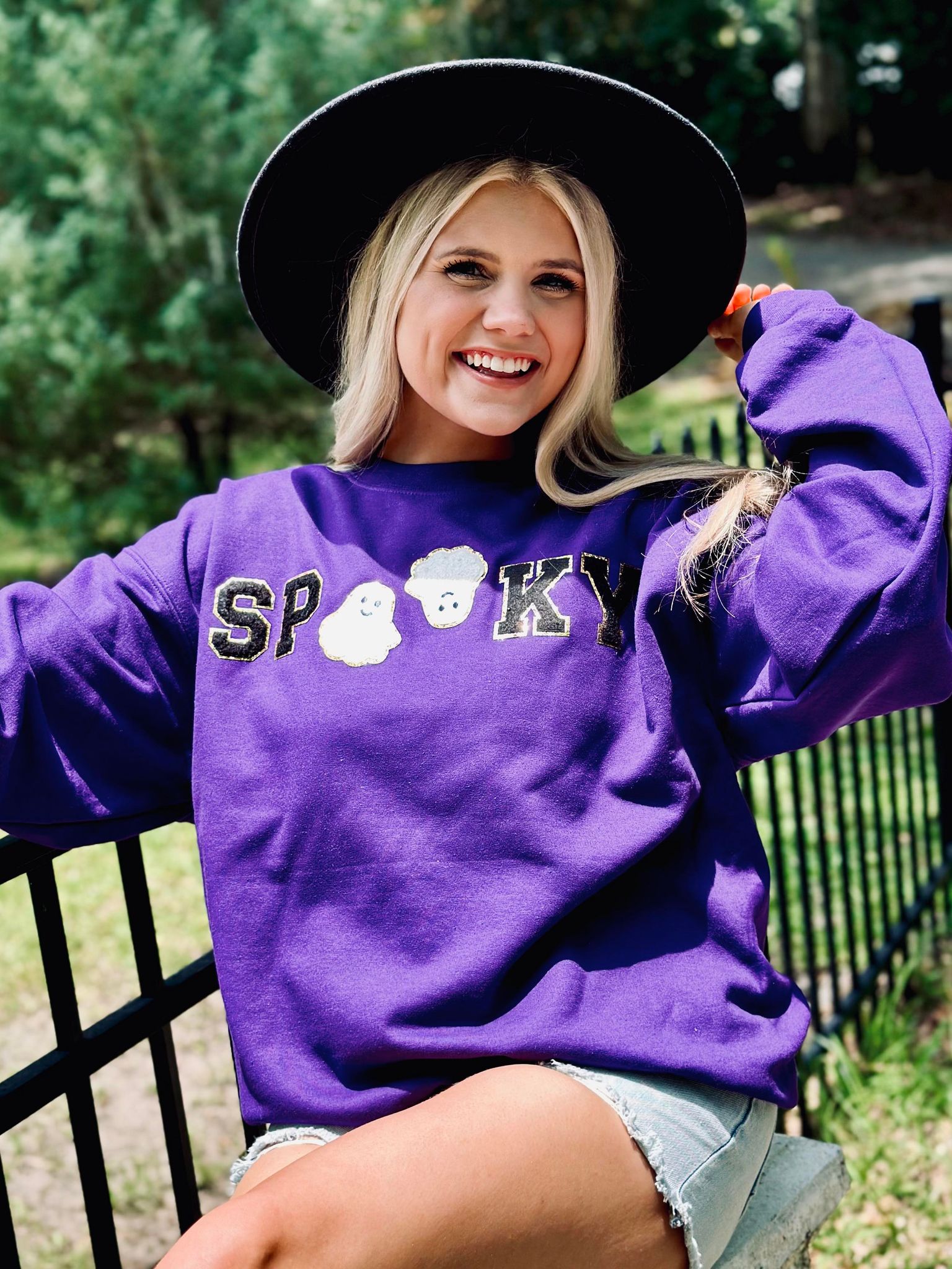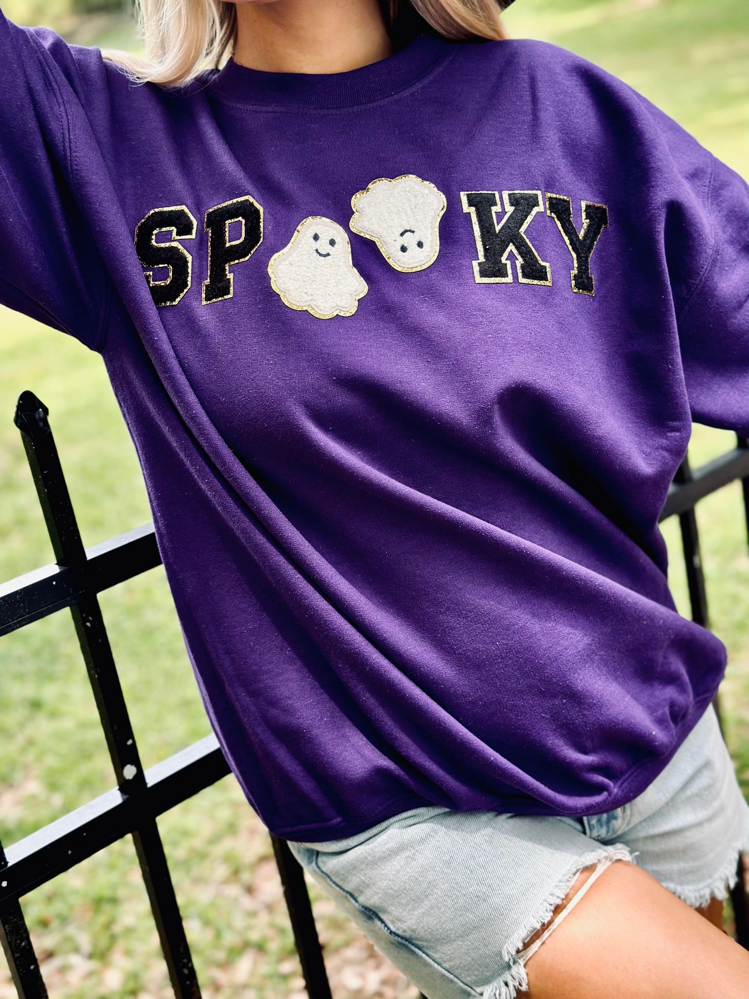 Spooky Flying Ghost Chenille Patch Sweatshirt