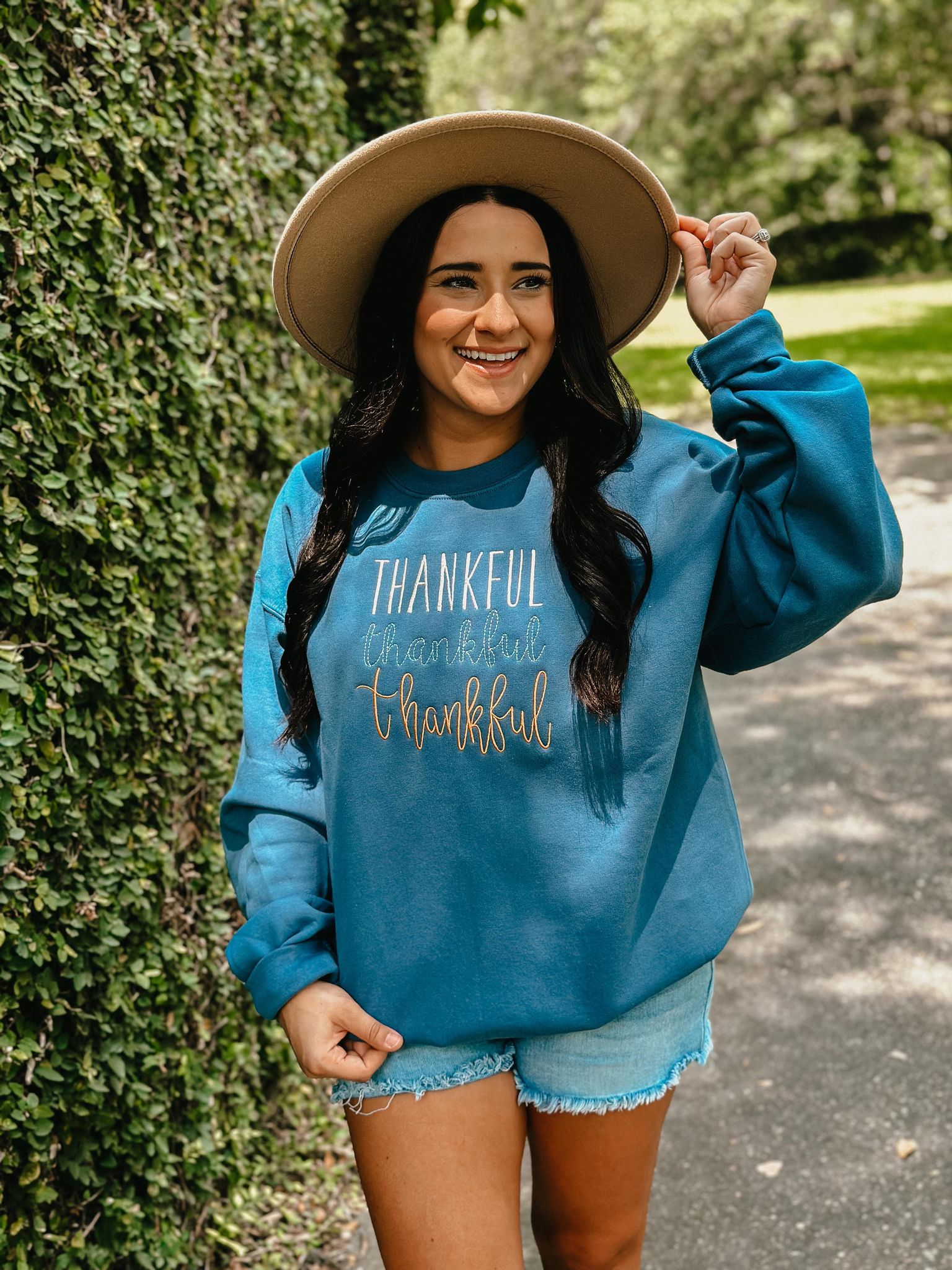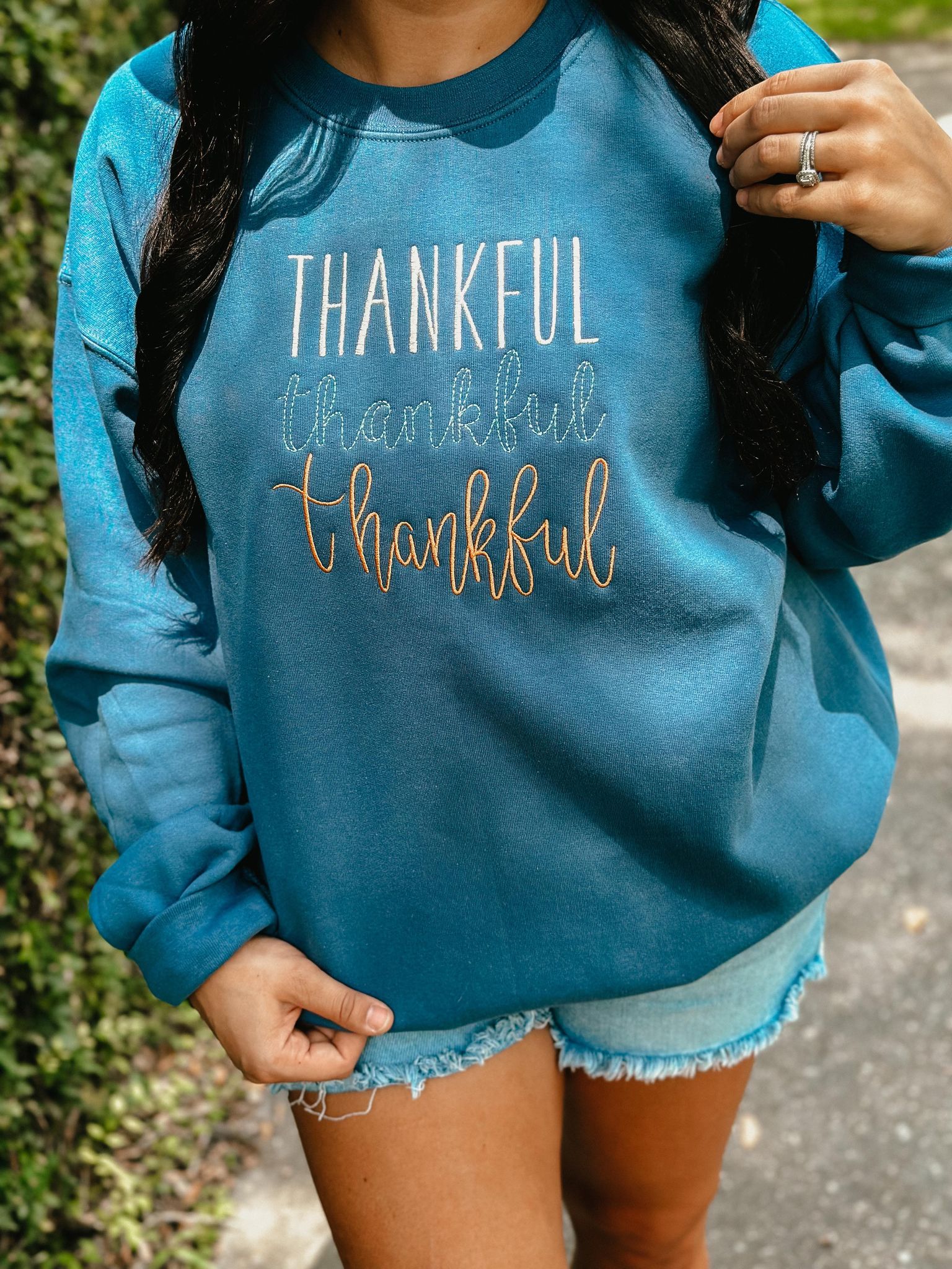 Thankful Trio Multi Color Embroidered Sweatshirt