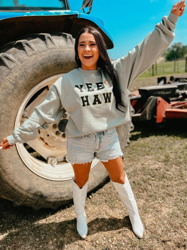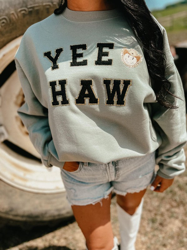 Yee Haw Tan Happy Cowboy Chenille Patch Sweatshirt